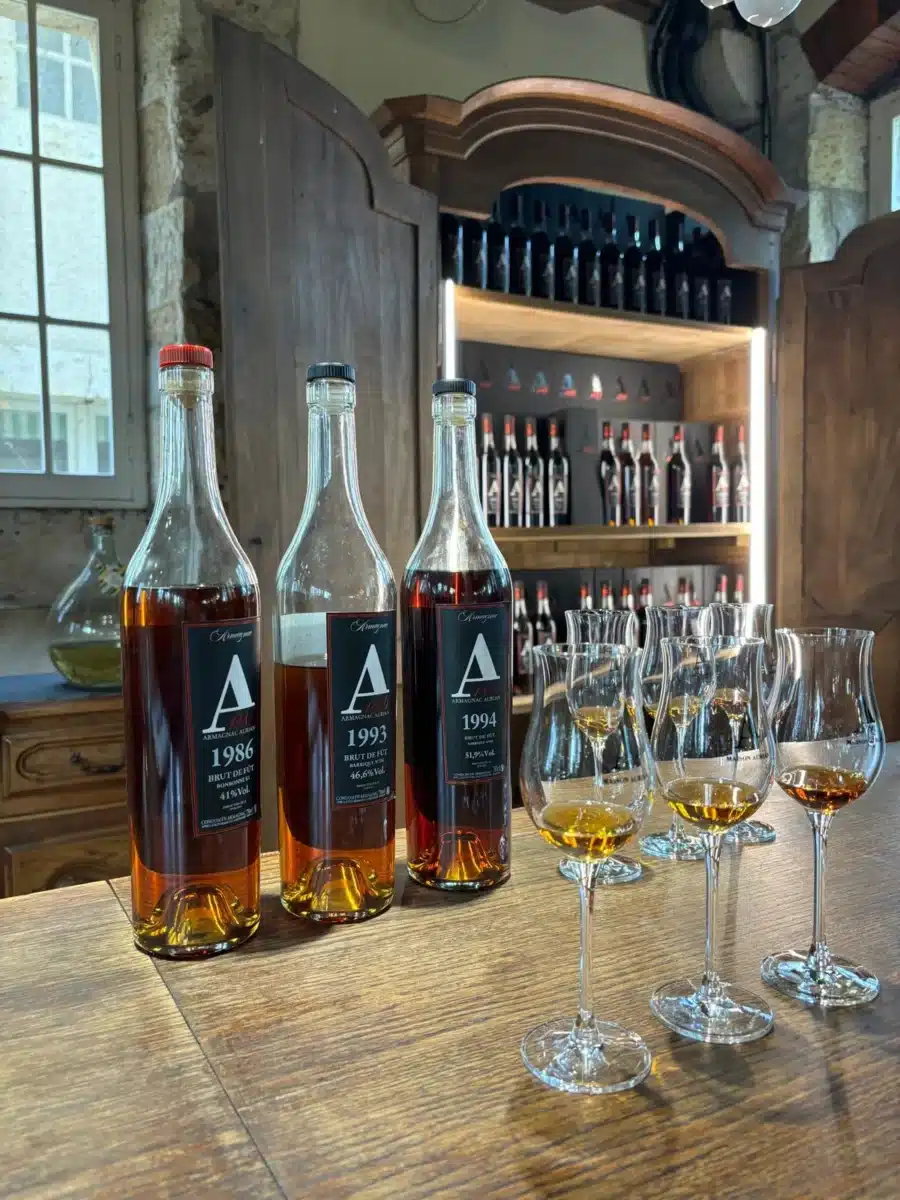 La Maison sélectionne, élève et conserve depuis des décennies des Armagnacs millésimés uniques, vieillis lentement dans ses chais historiques. Chaque fût est suivi individuellement et embouteillé uniquement lorsqu’il a atteint son équilibre optimal. Elle se démarque d’ailleurs par son impressionnante et authentique gamme d’Armagnacs millésimés allant de l’année 1900 à nos jours, pour le plus récent.